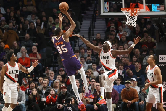 進(jìn)入最后一節(jié),開拓者開局手感并不佳,雙方分差縮小至2分。然而開拓者逐漸找到節(jié)奏,一波14分的攻擊將優(yōu)勢擴(kuò)大,小節(jié)后段太陽逼近比分。本節(jié)比賽太陽的杜蘭特貢獻(xiàn)11分。最終,開拓者以109-104贏得比賽。